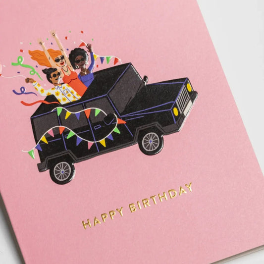 כרטיס ברכה: Birthday Love בלון אדום רקע ורוד