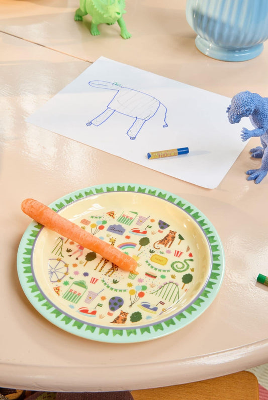 צלחת מלמין לילדים - נטלי לאטה - תנין במסגרת משבצות כחול