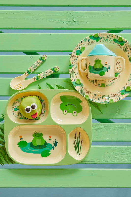 צלחת מלמין מחולקת - הדפס חיות של נטלי לאטה במסגרת כחול משבצות