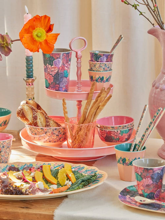 כוס מלמין פרחי אליסון רקע ורוד