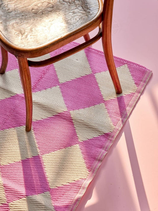 מחצלת ראנר מפלסטיק ממוחזר משבצות דמקה ורוד