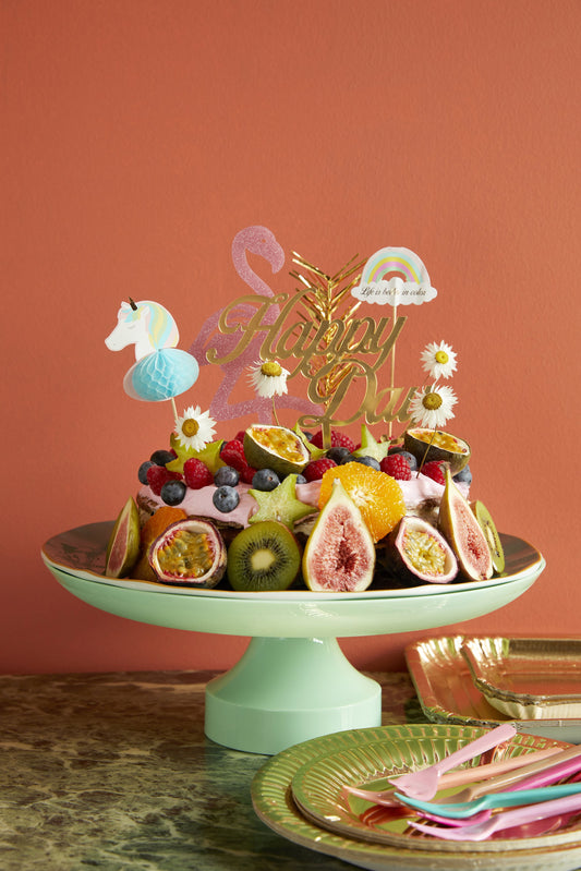 קישוט לעוגה בצורת פלמינגו מנצנץ