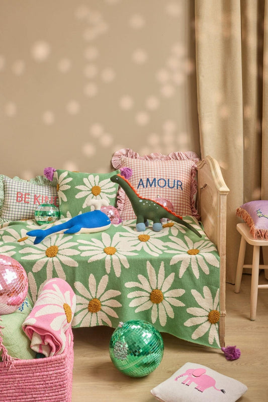 כרית מלבנית ירוקה משובצת עם רקמה - BE KIND