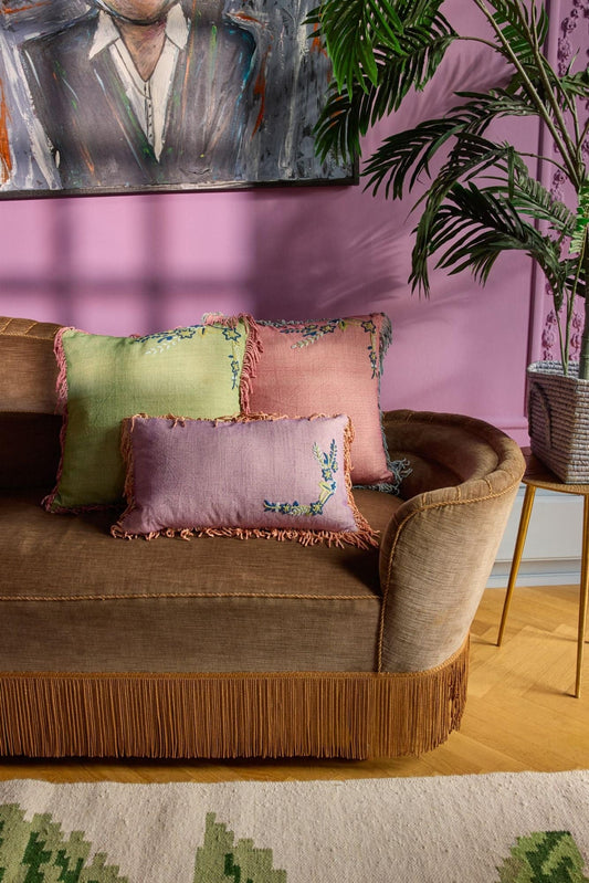 כרית מרובעת ורודה משובצת עם רקמה - AMOUR