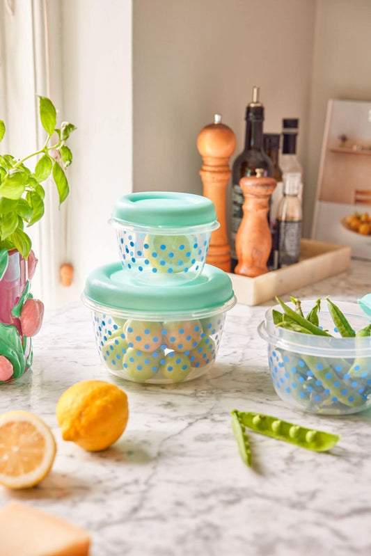 סט 3 קופסאות פלסטיק עגולות עם נקודות תכלת