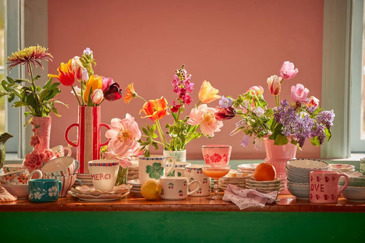 ספל קרמיקה לתה - פרחים ורודים עדינים