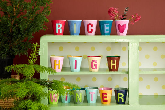 כוס מלמין אות W ורוד רקע ליים