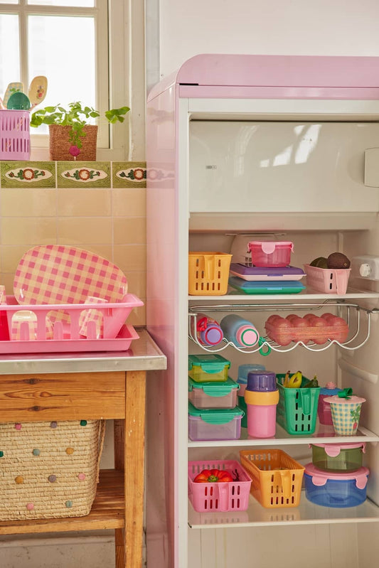 קופסת אחסון שטוחה מפלסטיק - ורוד ולבנדר