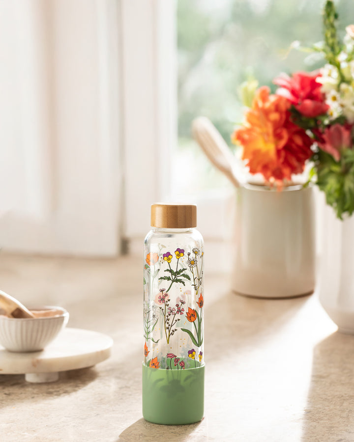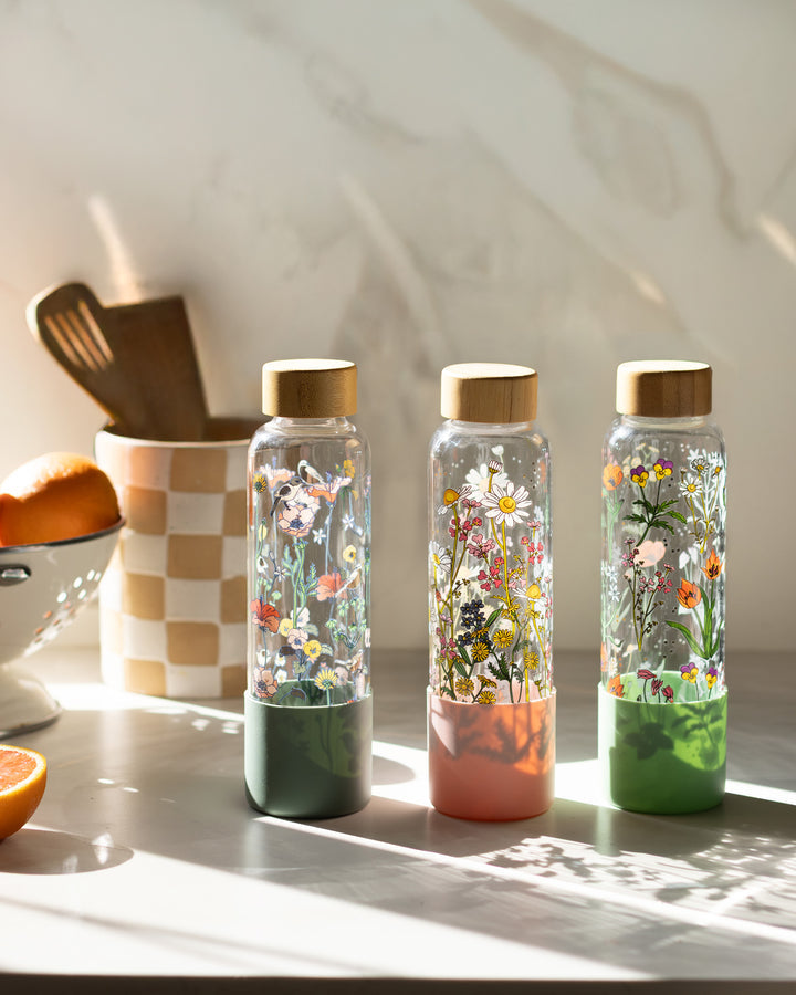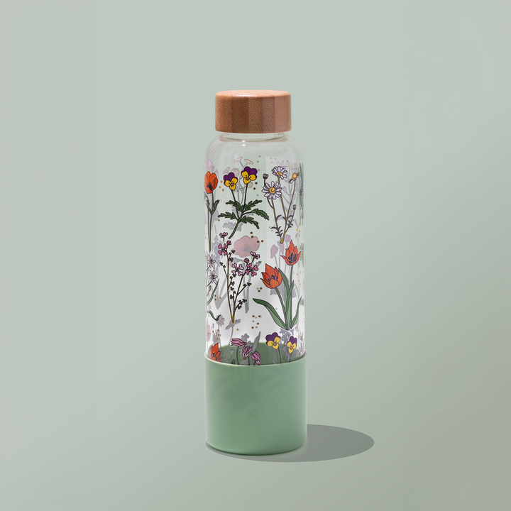 בקבוק שתייה מעוצב עם איורים מקוריים בשילוב פויל מוזהב ועדין מתוך הקולקציה המקומית שלנו, שמעמידה במרכזה בעלי-חיים וצמחים ארצישראליים שהם חלק בלתי נפרד מנוף ילדותינו. הבקבוק עשוי מזכוכית בורוסיליקט (זכוכית עמידה וקלה), נסגר בהברגה עם מכסה עץ בהיר וכולל גם שרוול סיליקון המולבש על חלקו התחתון כדי לספק יציבות מירבית והגנה על הזכוכית בהנחת הבקבוק. הבקבוק יהיה שדרוג נהדר לשגרת המים שלך במשרד או בבית ואולי אפילו יגרום לך לשתות יותר במהלך היום :)