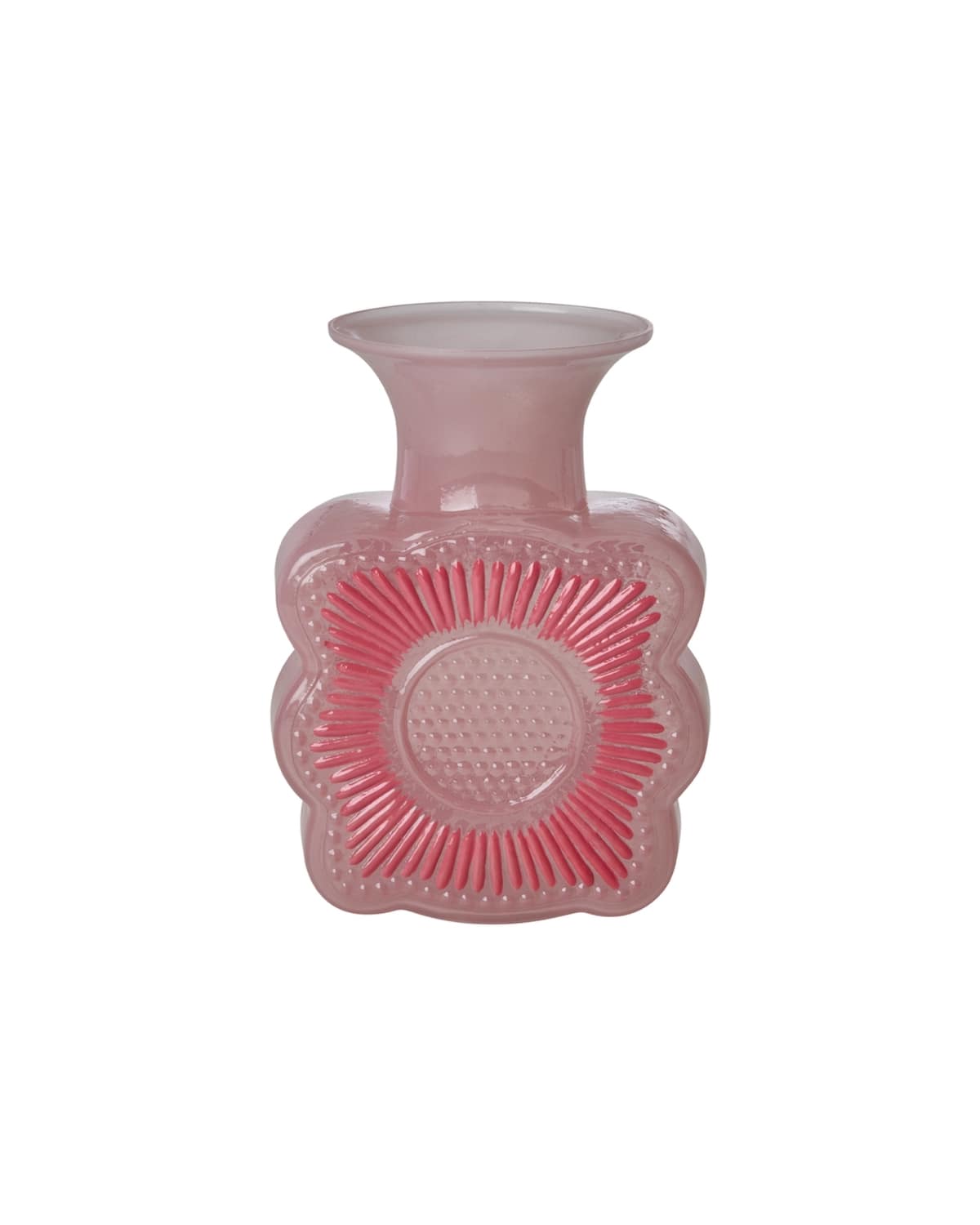 ואזת זכוכית ורודה מרובעת - פרח ורוד