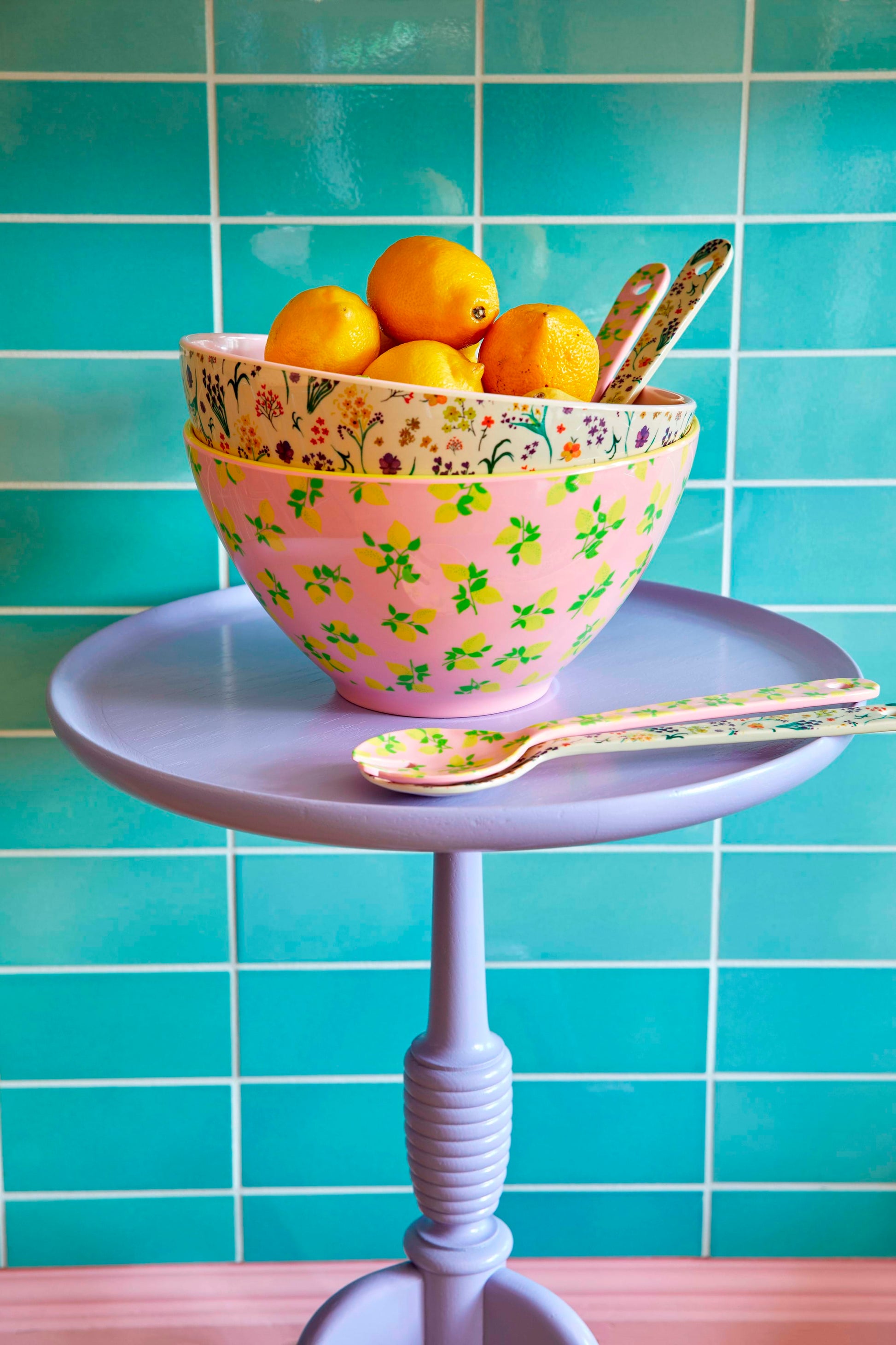 זוג כפות לסלט ממלמין. תוספת כיפית לשולחן האירוח וליומיום שמח. בעלות צורה נוחה במיוחד להגשת הסלט. מידות: 29 ס"מ