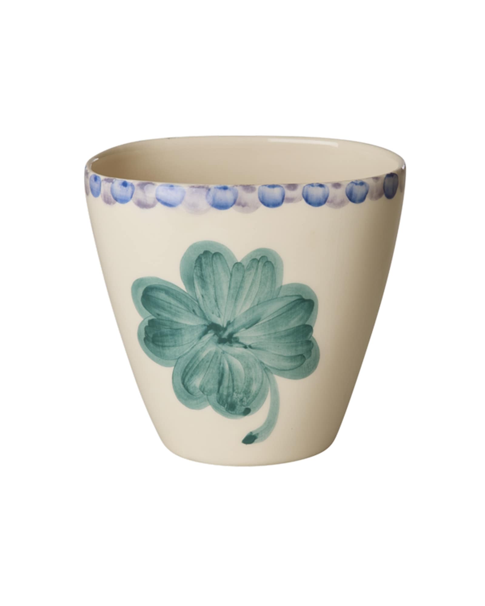 כוס מאוירת מקרמיקה, עשויה בעבודת יד, מקולקציית הקרמיקה החדשה והמיוחדת של RICE. הצבעים והאיורים הפרחוניים של כלי הקרמיקה נותנים להם טאץ' כפרי וביתי שעושה נעים בלב.