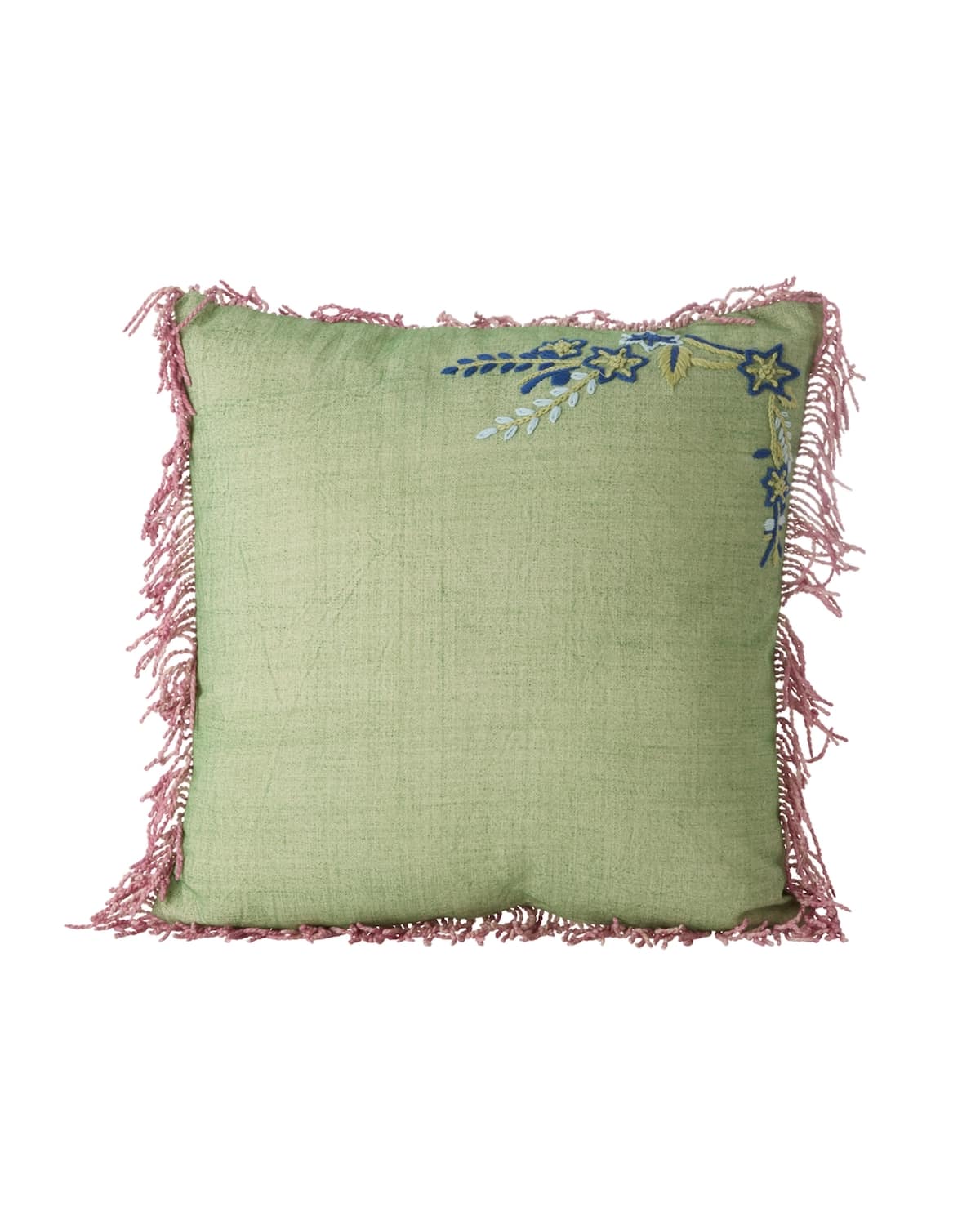 כרית מרובעת ירוקה עם רקמת פרח
