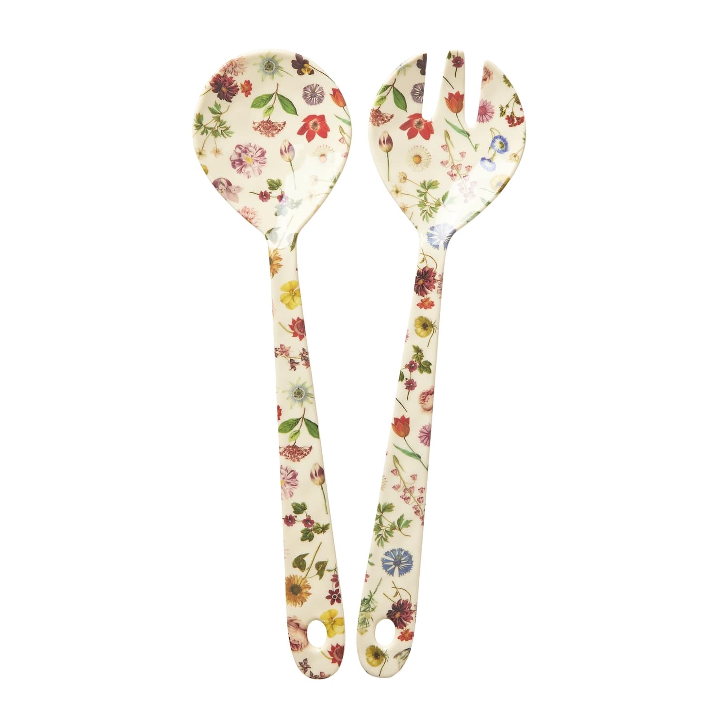 זוג כפות לסלט ממלמין בהדפס פרחים עם רקע שמנת. תוספת כיפית לשולחן האירוח וליומיום שמח. בעלות צורה נוחה במיוחד להגשת הסלט. קיימת גם קערת סלט תואמת :) אורך: 29 ס"מ