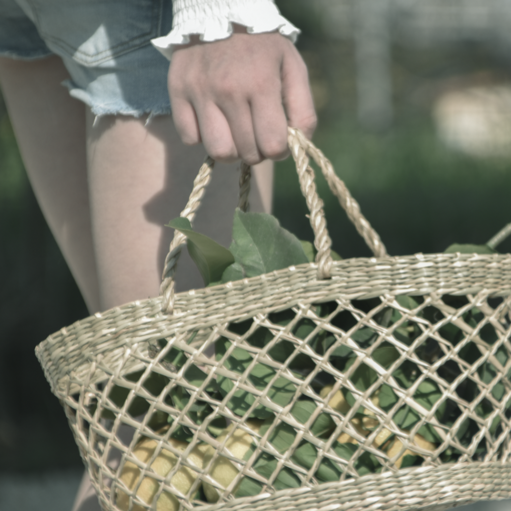 סל אחסון קלוע מקש טבעי בעבודת יד, בעיצוב פתוח ואוורירי שמכניס חמימות וסטייל לכל חלל בבית
