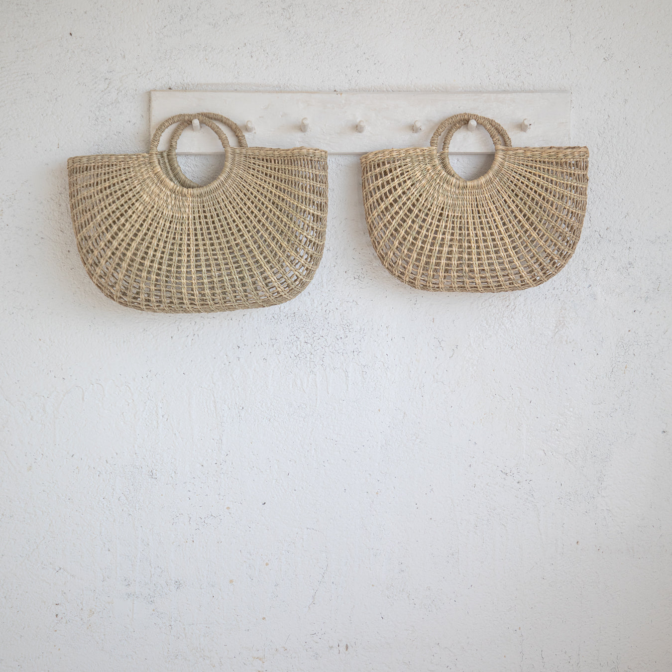 תיק ייחודי מקליעת עשב ים טבעי בגימור אוורירי ומעוצב, עם ידית עגולה נוחה לאחיזה שמעניקה לו מראה פיסולי ומעודכן