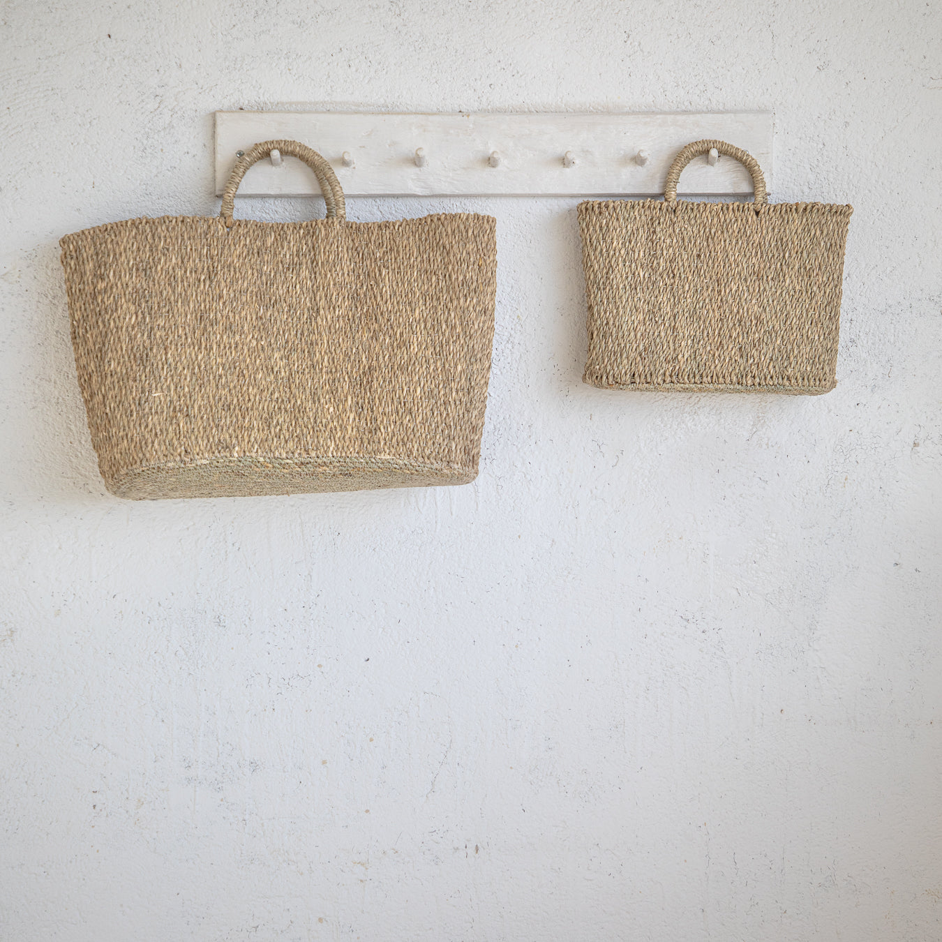 סל אחסון מקש טבעי בעבודת קליעה צפופה ומדויקת, עם ידיות נוחות לנשיאה ועיצוב קלאסי שמשתלב בכל חלל