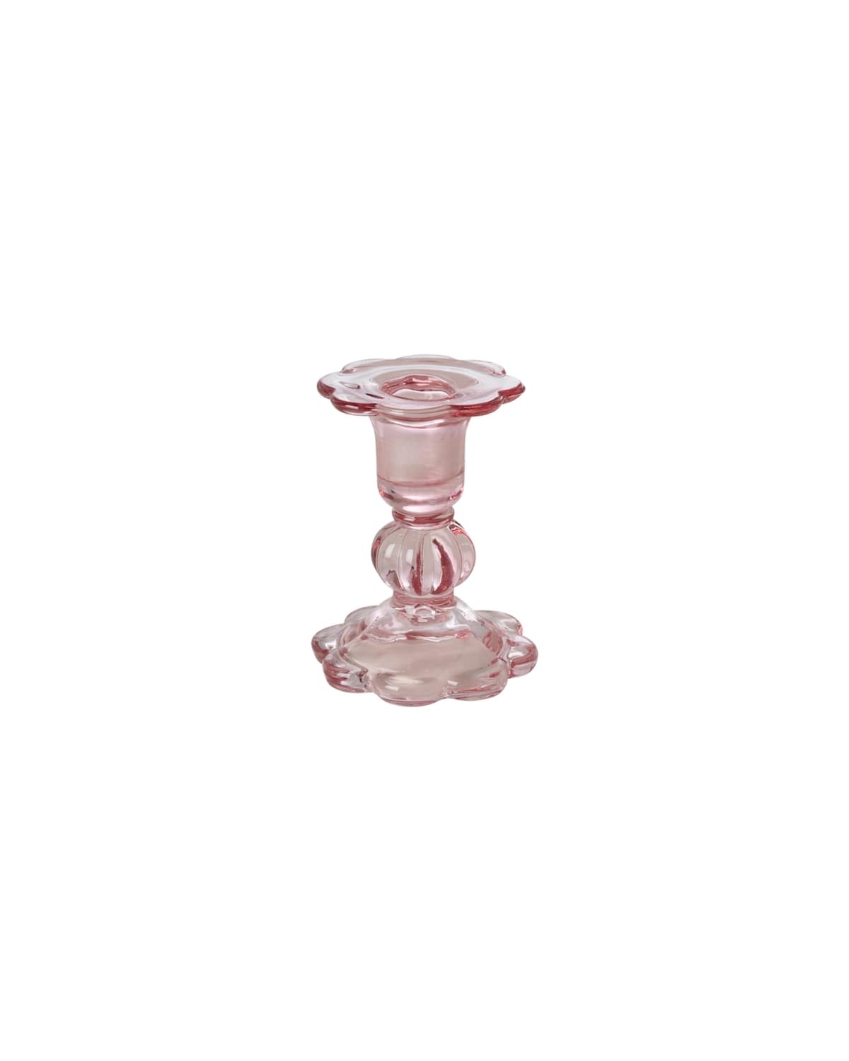 פמוט זכוכית קטן S - ורוד סיומת פרח
