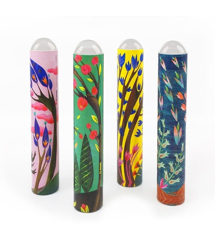 קליידוסקופ נוסטלגי בעיצובים מרגשים וצבעוניים מביטים בעינית ומסובבים עם הידיים