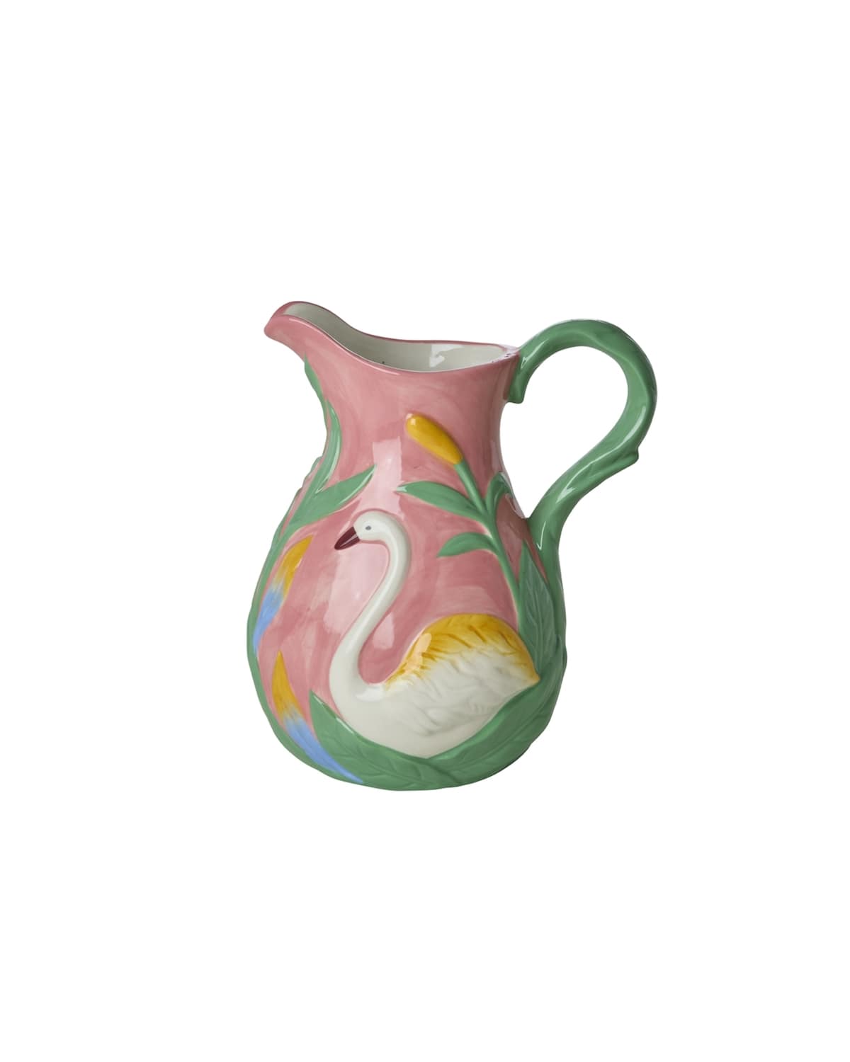 קנקן קרמיקה תבליט ברבור - ורוד ירוק