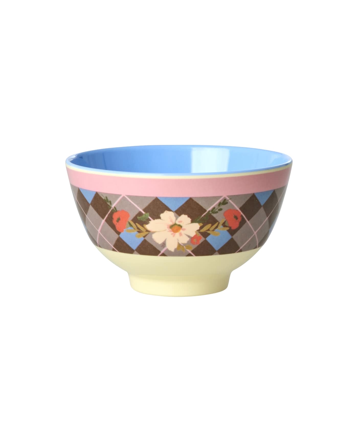 קערית מלמין טוטון (2 גוונים) בהדפס מעויינים חום-כחול ופרח