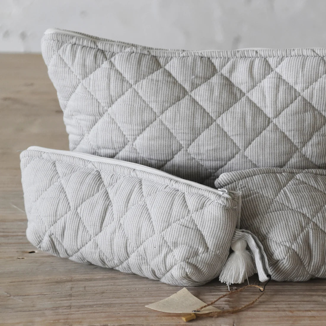 קלמר/ תיק איפור קווילט פסים אפורים דקים
