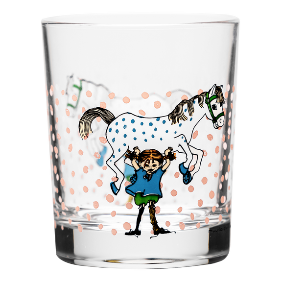 כוס זכוכית מעוטרת עם איורים מתוקים של בילבי בת גרב, הדמות שיצרה הסופרת השוודית אסטריד לינדגרן. לפי סיפוריה, בילבי היא ילדה מנומשת עם שיער כתום, בתו של פיראט שגרה בוילה וילקולה יחד עם מר נילסון, קוף המחמד שלה והסוס שלה, והיא הילדה הכי חזקה בעולם. כוס הזכוכית תתאים כמובן לשתיית משקאות קלים, אך תוכל להשתלב גם כפריט לעיצוב הבית והיא תוסיף כיף לפעילויות היום-יומיות.